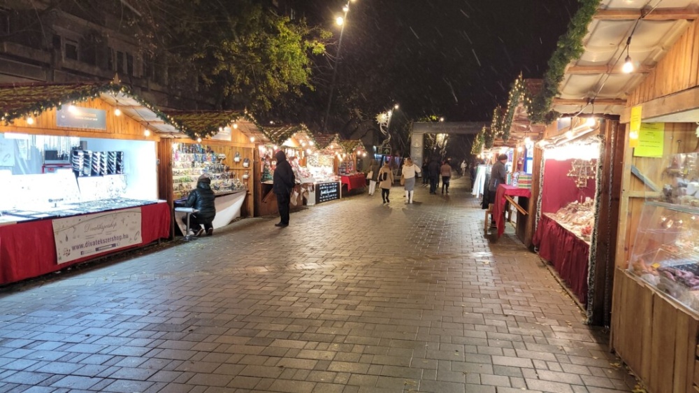 Sajnos ottlétünkkor semmiféle köztéri karácsonyi díszkivilágítás nem működött, bár így sokkal „intenzívebb” volt a karácsonyi vásári hangulat, hiszen a sok kis házikó ezernyi fényben pompázott, és sokkal jobban visszaadta azt az érzést, amit az ünnepkörtől várunk. Gondoljuk ez csak egyedi eset lehetett, hiszen minden fel van szerelve karácsonyi égősorokkal, világító díszekkel, és egy hatalmas fenyőfa is díszeleg a Nagytemplom előtti téren.
