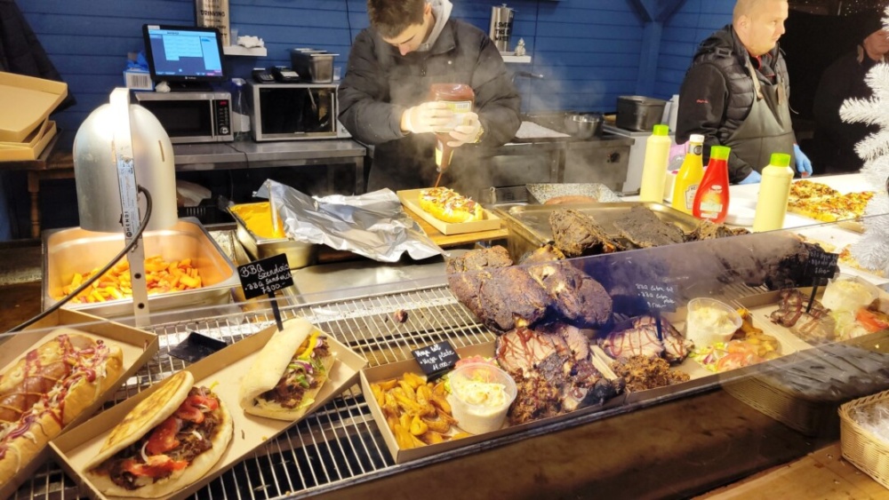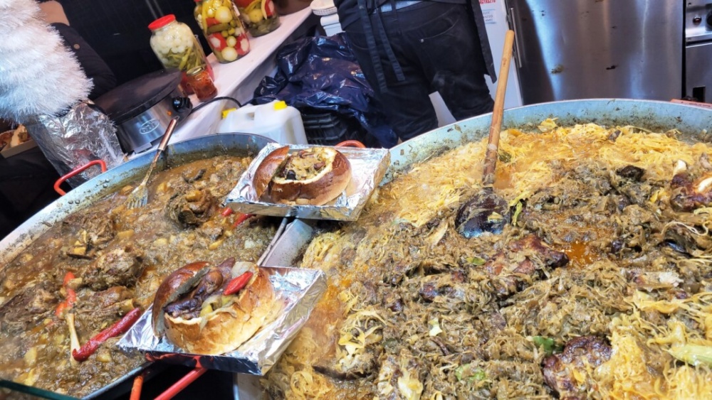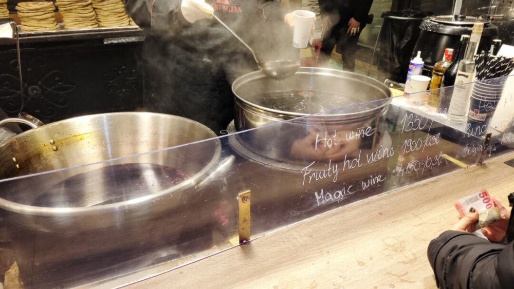 A gasztronómiai kínálat leírhatatlan, de ugyan az a helyzet, mint az ajándék tárgyak esetén, nagyon de nagyon át kell nézni, hol lehet ár/érték arányban finomat enni, vagy épen kortyolgatni egy forralt bort, puncsot, teát. Minden negatív híresztelés ellenére igen is találtunk olyan helyeket, ahol főleg ha magyarok vagyunk, nem maradunk sem éhesek, sem szomjasak, és a havi fizetésünket sem kell feláldozni.