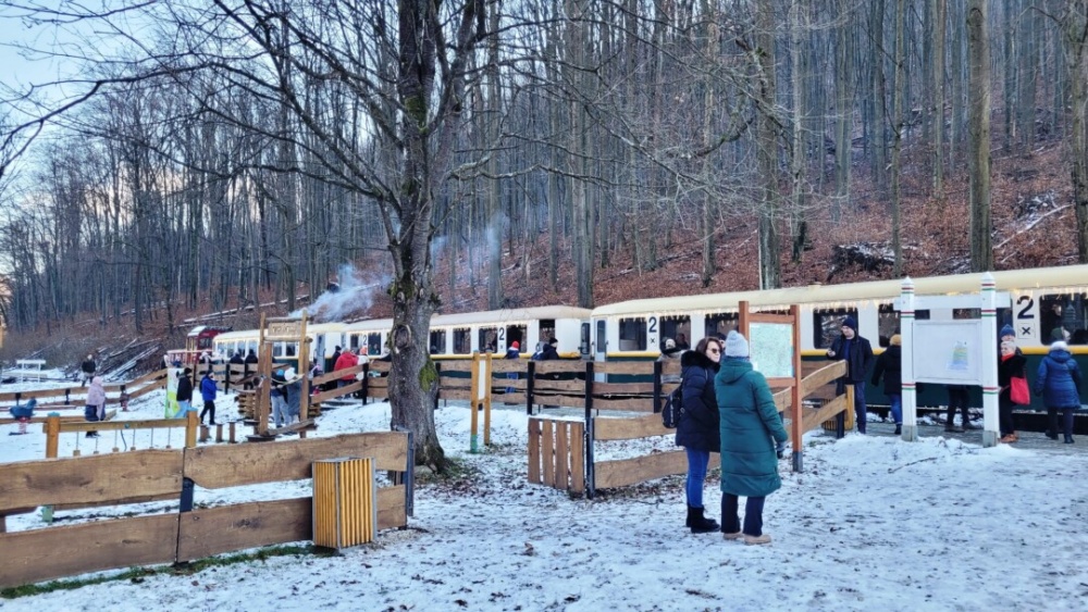 De választhatunk egy lazább programot is, ilyen például egy forralt borral és pogácsázással induló kisvonatozás, a karácsonyi fényekkel díszített Erdei Kisvasúttal.
