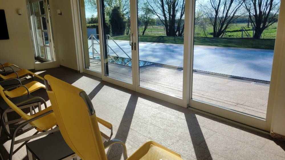 Természetesen a wellness részleg mindennel felszerelt, amibe a törülközőkön kívül még a folyadékpótlás is megoldott, ahogy a kényelmes pihenő ágyak kilátással a Berekre, és az egész wellness előtt elterülő, melegebb időjárás esetén élvezhető medence részre, kültéri napozókra.