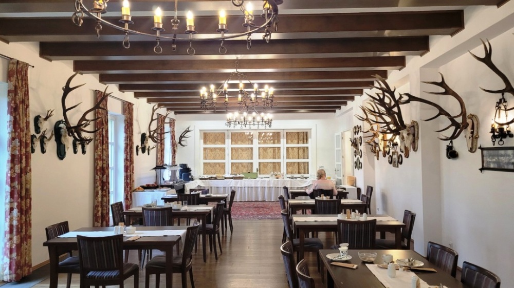 Viszont alkalmunk volt a fenséges, minden részében házias, természetesen svédasztalos rendszerű, korlátlan fogyasztást biztosító reggelit kipróbálni az előző esti vadász teremben. Aki itt nem találja meg a hideg/meleg ételek, friss helyben készült péksütemények, házi lekvárok és egyéb házi finomságok közül a magának valót, az nem is éhes.