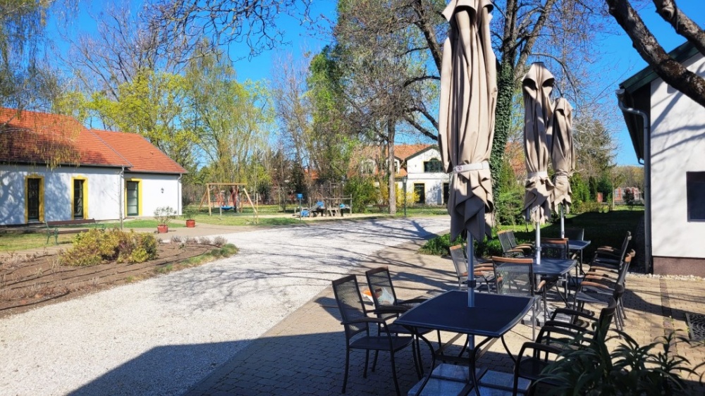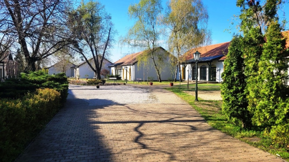 Magyarországon nem annyira elterjedt módon ez a szálloda nem egy épületből áll, ahol minden egymás alatt/felett/mellett van, hanem több egységből, egy, még így az ébredő természet adta háttérrel is barátságos, gondozott gyönyörű kertben.