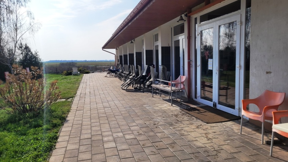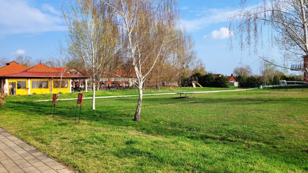 A jó idő beköszöntével kerti bútorok, szabadon használható napozó ágyak, étkezéshez asztalok, padok állnak rendelkezésre, és egyértelműen nagy szabad füves felület, ha valaki inkább ezt részesíti előnybe a pihenéshez.