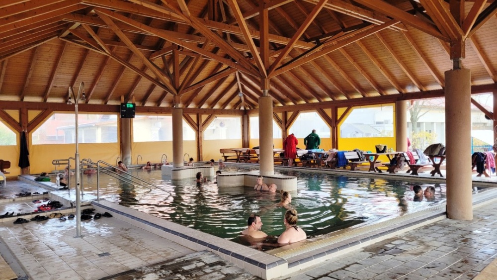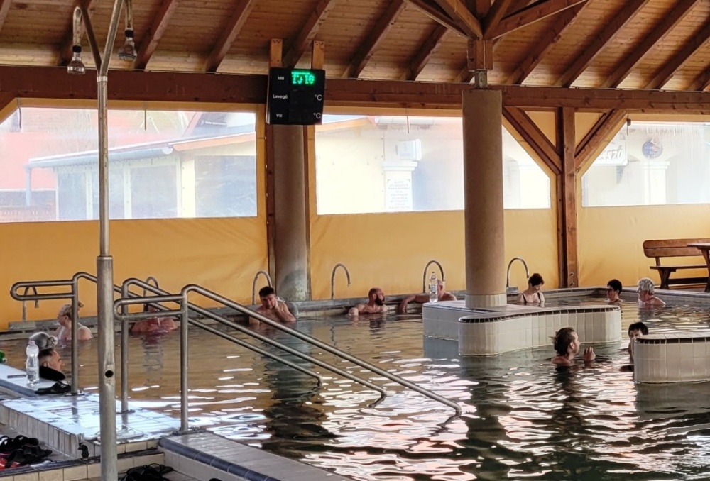 Maga fürdő ebben az időszakban még javarészt téliesített, ami azt jelenti, hogy a belső zárt medencén és pihenő részen kívül, a külső nagy, zárt tetővel rendelkező medence is fóliázva, téliesítve van, tehát aki nem szereti a zárt fürdők párás levegőjét, az a szabadban is áztathatja magát a kellemesen meleg termálvízben, de még sem hidegben, vagy esőben.