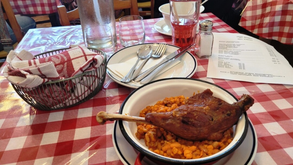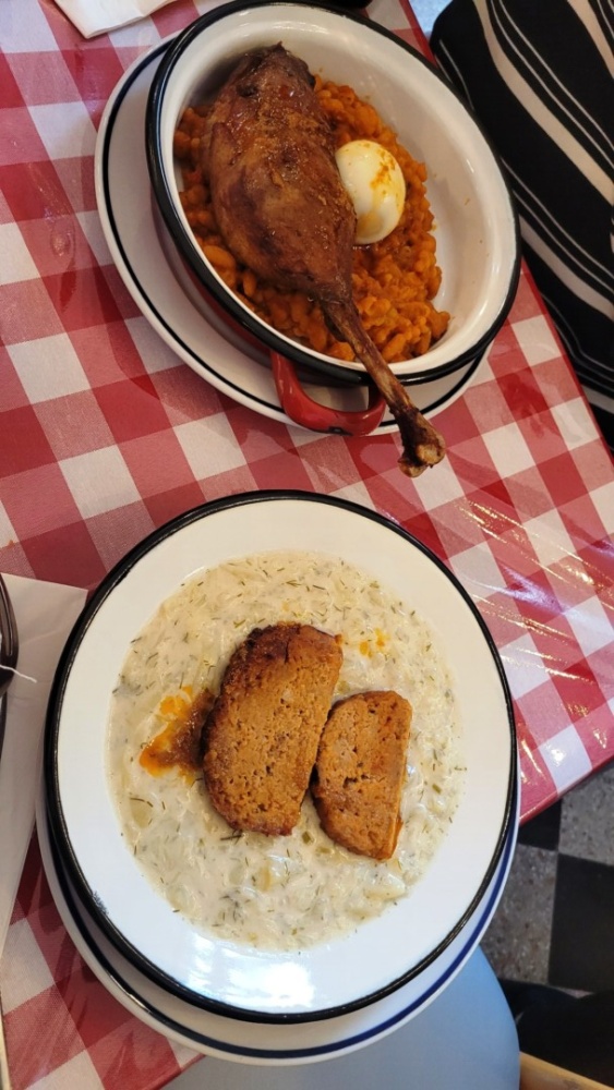 A többféle lehetőség közül mi a sült libacombos változatot választottuk egyik fogásnak, sem a sóletben, sem a libában nem csalódtunk, bőséges, nagyon, de nagyon finom, és már ránézésre is pompás fogás!