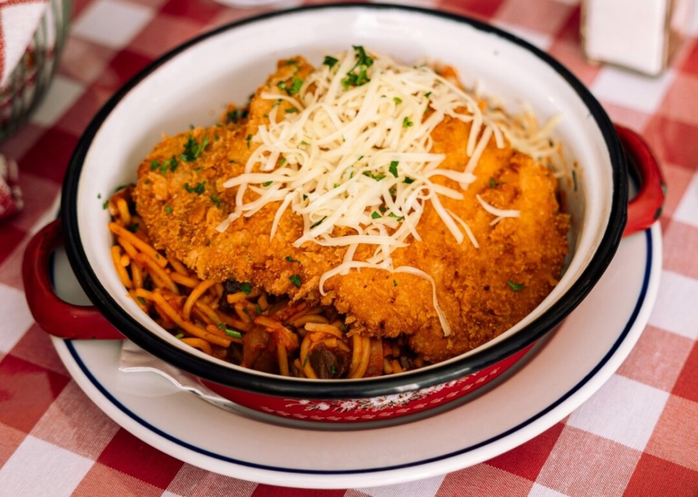 Azért ha valaki nem ezekre a kemény magyaros ízekre vágyik, tökéletes választás egy Milánói spagetti pompás kis rántott szelettel, ami szintén a kínálat része.