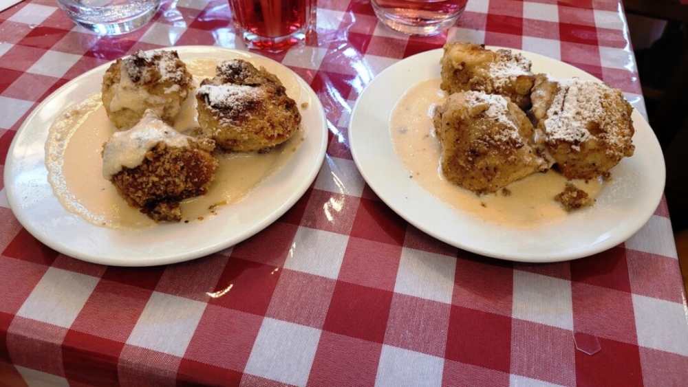 Nem kevésbé kelleti magát az aranygaluska sem, finom kis borhabbal szervírozva, mivel több darab van a tányéron, így az asztaltársaságnak érdemes rendelni egyet belőle…