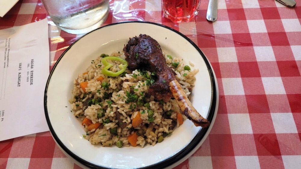 Asztaltársunk fogása nem kevésbé kötelező tétel az étlapról, mi is lehetne más egy házias étkezdében, mint egy vérbeli paprikás csirkecomb pörkölt galuskával! A kép magáért beszél…