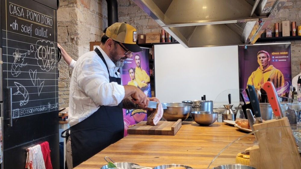Lehetőségünk volt ennek a kulináris csodának az elkészítését lépésről lépésre végigkövetni, miközben alig vártuk, hogy tányérunkban landoljon a végeredmény. A Casa Pomo D’Oro étteremnek van egy olyan helysége is, melyet kifejezetten ilyen alkalmakra alakítottak ki, itt főztünk mi is.