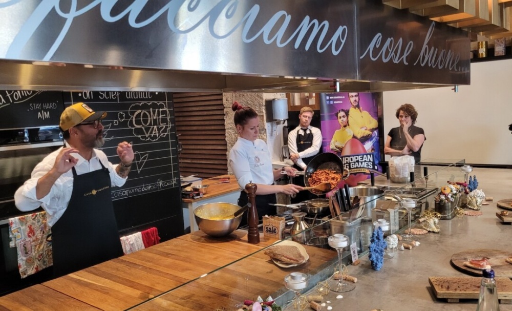 A projektértékelőnek a belvárosi Arany János utcában található Casa Pomo D’Oro, tipikus olasz étterem adott otthont, ahol a részvevőknek alkalmuk nyílt együtt főzni a híres séffel, Giannival, méghozzá egy olyan tipikus olasz ételt, aminek egyik alapja a táplálkozásunkból nélkülönözhetettlen tojás.