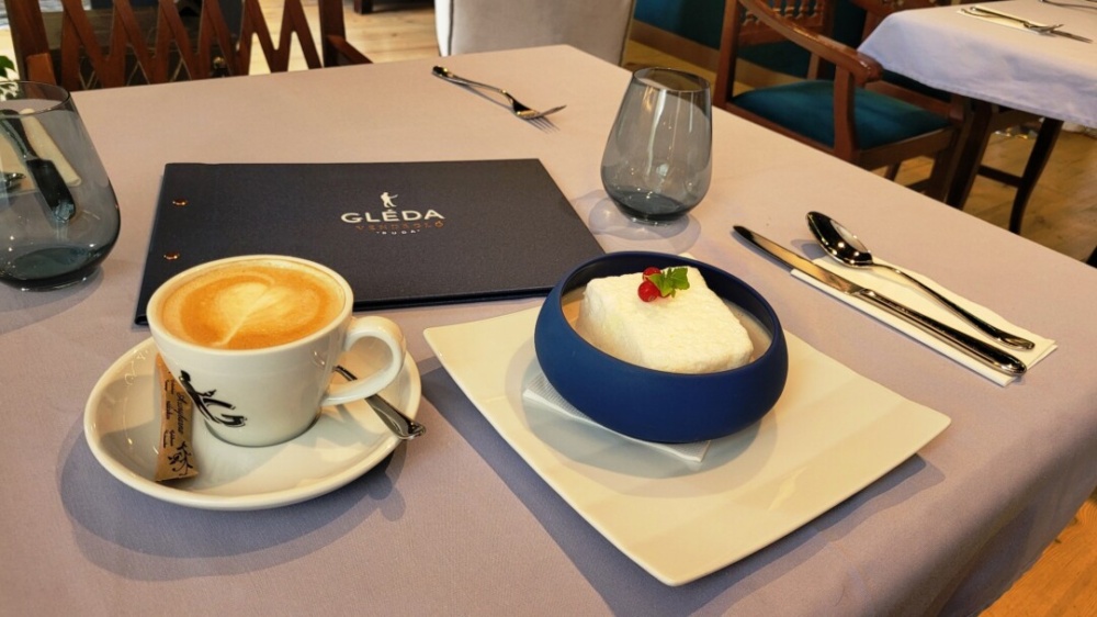 Nincs étkezés desszert nélkül, hiába levegőt sem kapunk, ez volt a „menü” negyedik tétele, ami egy „Madártej volt citrushabbal, gyümölcsdíszítéssel”. Ezt teljesen „mentesen” készítik, tehát erről a finomságról senkinek sem kell lemondania. Hozzá egy remek kávé, és teljes a kulináris élvezet!