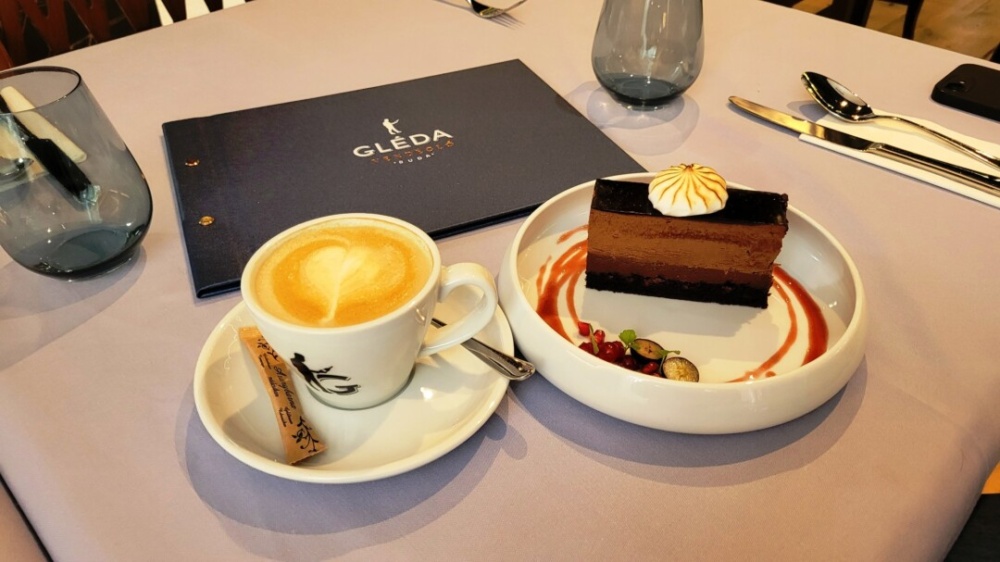 És hát a „korona” mindenre! Mint azt az előző cikkünkben is jeleztük, van egy desszert, amit mindig mindenki követel, levehetetlen az étlapról, ez nem más, mint a híres „Gléda tripla csokoládétorta”! Erről nehéz mit írni, meg kell kóstolni, élvezni az ízeket és ennyi…