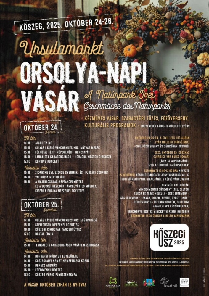 Holnaptól három napon át várja Alpokalja ékszerdoboza, Kőszeg a látogatókat, hiszen indulnak a híres Orsolya napi vásár fergeteges programjai, gasztronómiai kínálata, senki ne hagyja ki az ingyenesen látogatható rendezvényt, garantáltan nem fogja megbánni!