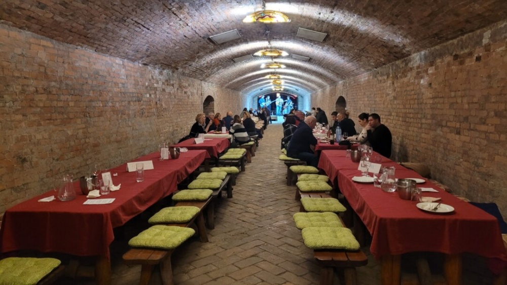 De nézzünk akkor körül egy kicsit a pincében! Mivel a Pincejárat kereti között érkeztünk, így nem csak zenés kíséretben kortyolgathatjuk a borainkat, hanem egy vezetett borkóstoláson is részt vehetünk, és egy másik, ténylegesen pinceágat is megtekinthetünk.