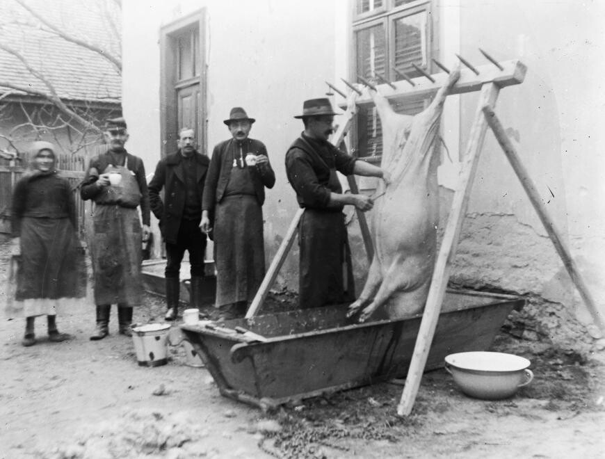 Az 1900-as évekre a disznóvágás hagyománya kialakult és egész sor szokásokat vonultattak fel rá. Meghatározott időpontban: Egyed napján, azaz szeptember 1-jén fogták régen a disznót hízóba. Hagyományosan november 30-a volt a disznótorok kezdőpontja, így nem a véletlen műve a „disznóölő Szent András” népi elnevezés András napon. A farsangi időszak a lakomák, esküvők ideje, s a disznótoroké is. A téli esküvőknek számos oka van, de az egyik az, hogy kellett a hús a lakodalomba, kellett a hízott disznó, s ennek nem a nyár az ideje. A nagycsalád úgy ölt disznót, hogy hol itt, hol ott kerüljön sor erre a tevékenységre. Egyrészt így segíteni tudtak egymásnak a munkában, másrészt meg így mindig volt kóstoló a háznál.