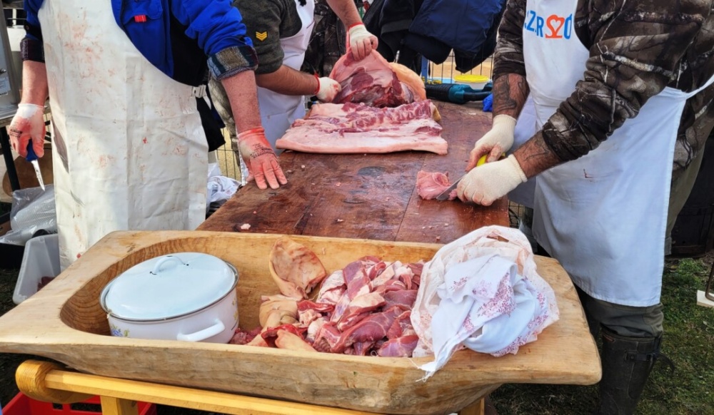 Viszont hogy addig sem maradjon senki éhes, több csapat már reggel keverte a lábasba a friss vért különböző formában, így akinek nem volt elég a sok hideg fogás, azok már kanalazhattak is a friss kenyerek mellé.