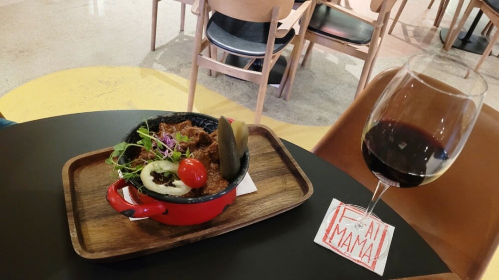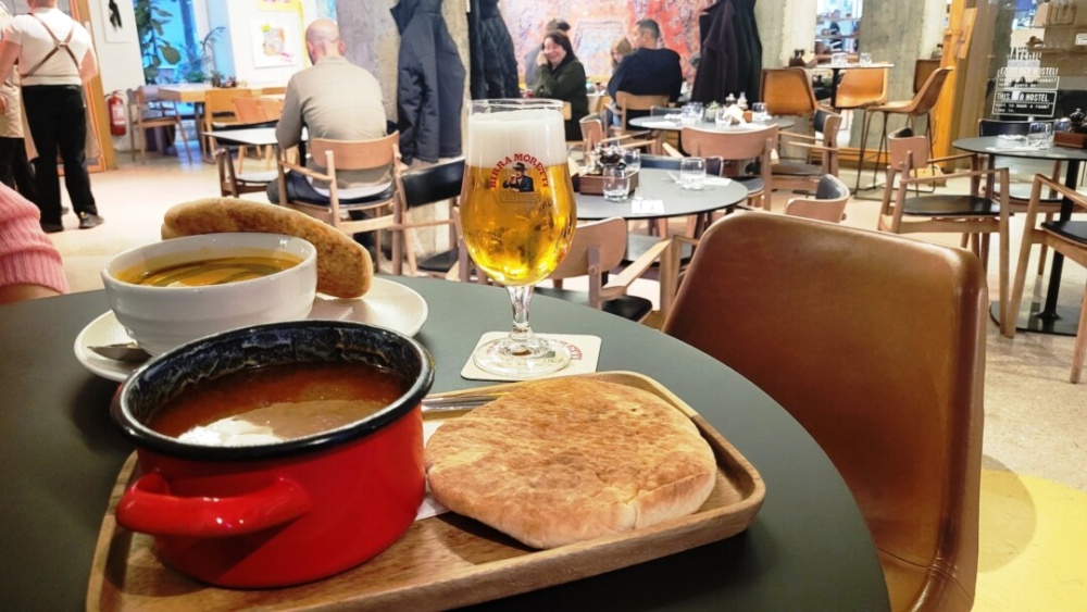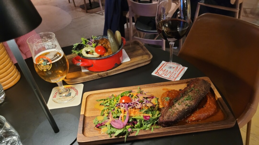 És mi is lehetne a másik, ha nem az étterem értelemszerűn legkedveltebb levese, ami egy „Alföldi marhagulyás”, nem egyébbel, mint finom, puha, meleg „Fat Mama lepénnyel”! Kóstoltunk már néhány gulyást, ezt itt bármikor megennénk újra.