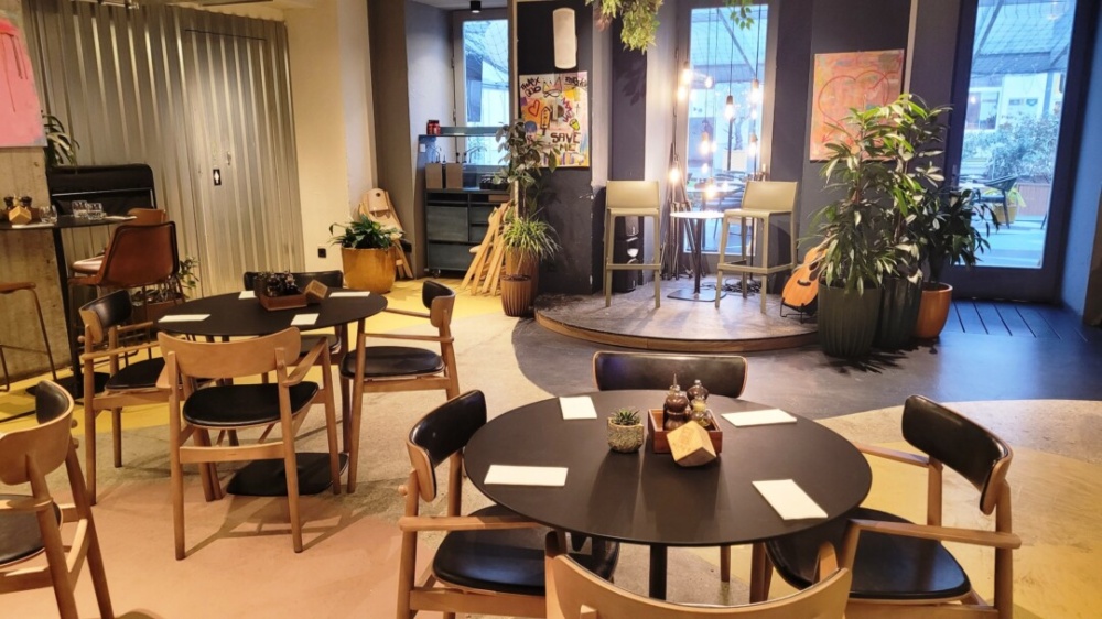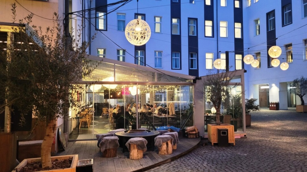 Kellemes, sétáló utcai környezetben találjuk a nagy Hostel aljában, kívülről megbúvó éttermet, igaz, ha beköszönt a jó idő, a komplexum udvarán levő belső teraszrész sokkal jobban felfedezhető az utcáról is.