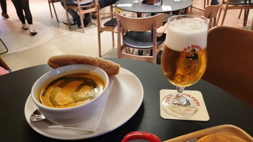 Itt most némi szünet következett egy remek csapolt Bira Moretti sörrel, mert főleg a gulyás mennyisége megtette hatását, de nem mondtuk le nyilván a főételekről, hiszen alig bírtunk választani amúgy is a jobbnál jobb lehetőségek közül.