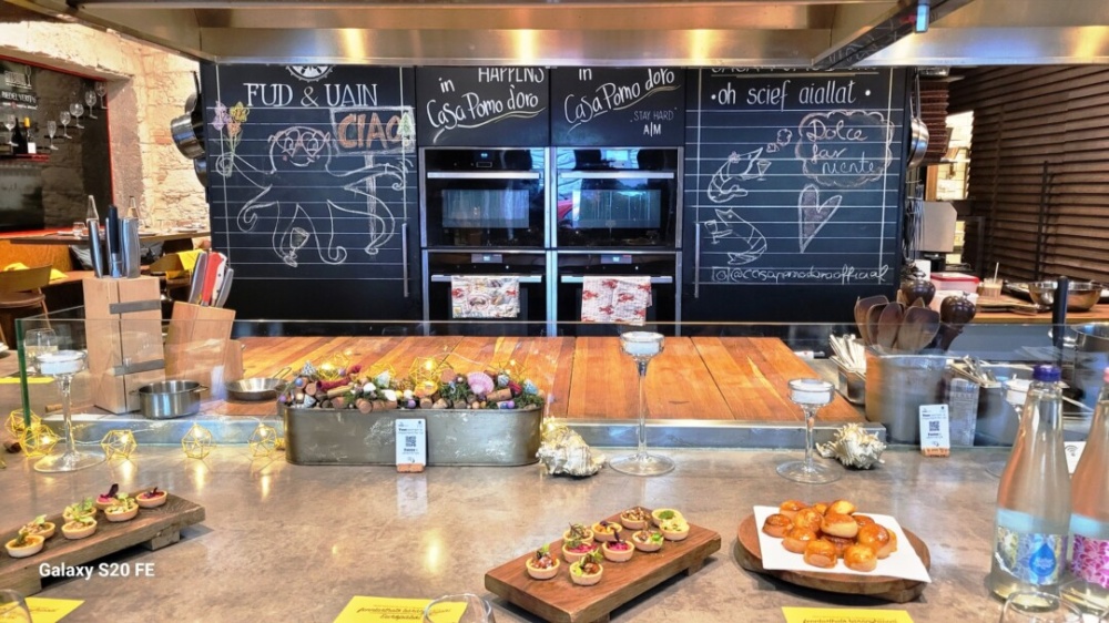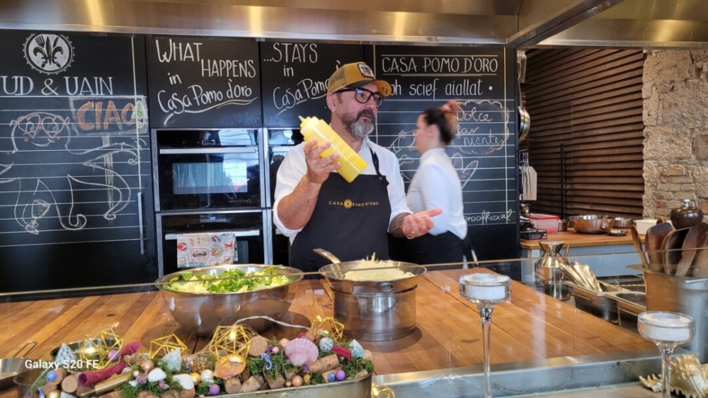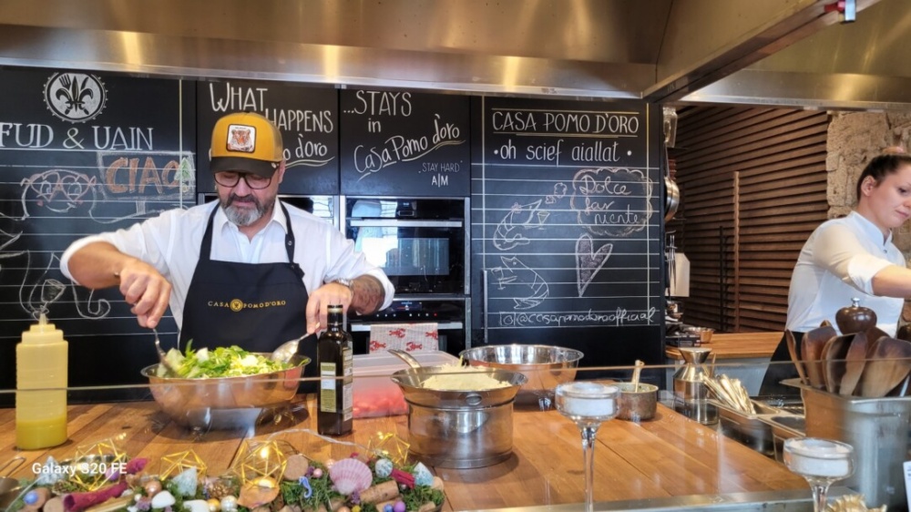 A Casa Pomo D’oro több részből álló komplexumának látványfőző konyháját pont az ilyen bemutatókra találták ki, korábban részletesen be is mutattuk, most viszont nézzük meg milyen finomságot is készített nekünk a mester!