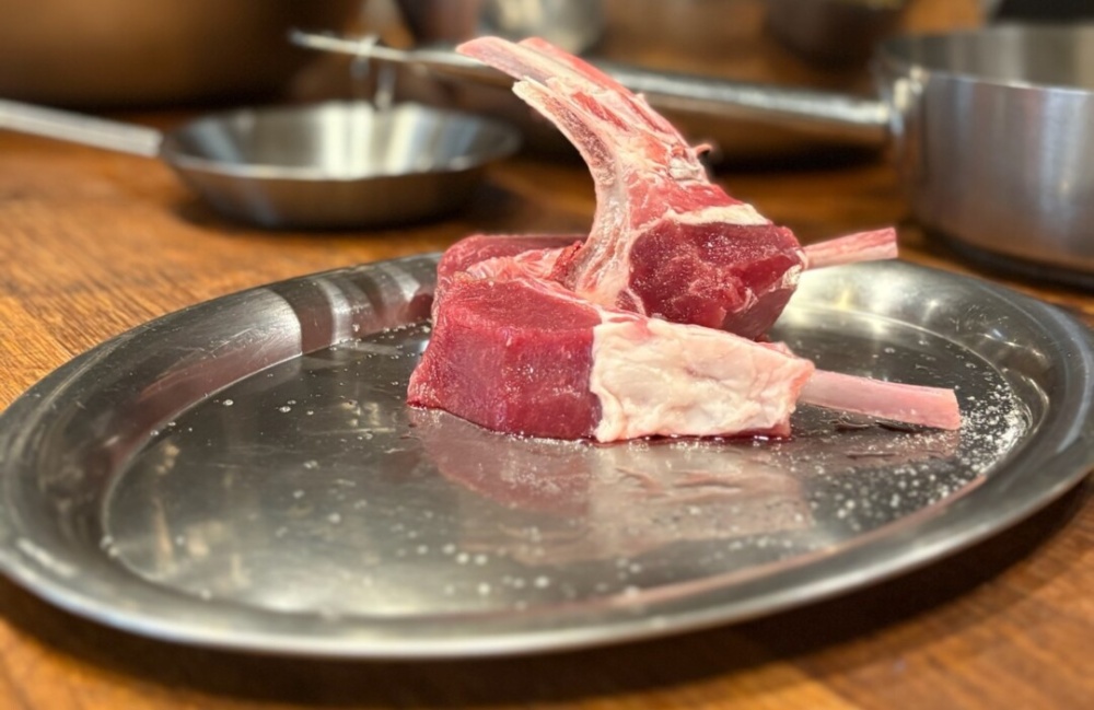 A báránybordákat tisztítjuk, felszeleteljük, sózzuk majd pihentetjük.