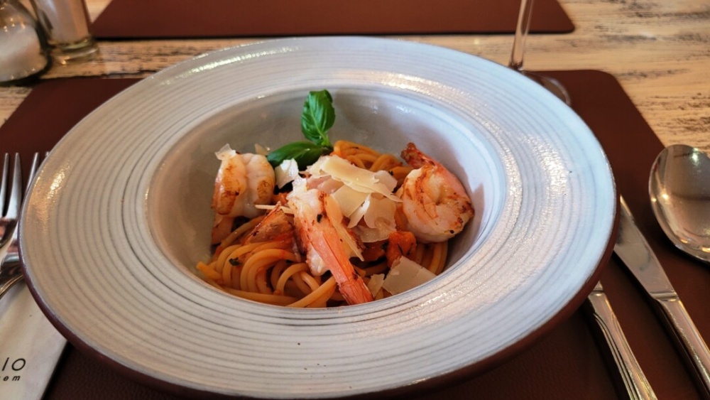 Viszont nem beszélhetünk olasz konyháról, ha tészta nincs az ételsorban! Egyértelmű, hogy a következő tétel egy házi paradicsomos spagetti volt, méghozzá tigrisrákkal. A tészta Olaszországból érkezik, és Kárpáti Úr ezt mindig felügyeli. Nos, aki ezt megkóstolja, egyből világos lesz számára, miért is olyan híresek az olasz tészták…