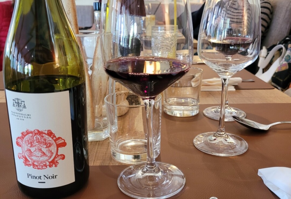 Ehhez viszont már egyértelműen váltani kellett a vörös borok világába, ebben a segítségünkre volt a Pannonhalmi Főapátság 2024-es Pinot Noir-ja, ami még tökéletesebben kiemelte a rizottó és a kacsamáj fenséges ízeit.