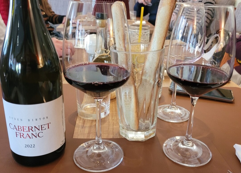 Egyértelmű, hogy magyaros fogáshoz, magyar, és most már helyi vörös bor dukált, ami egy 2022-es Csopaki Cabernet Franc volt, a Guden birtokról. Remek társítás, ezt így ajánljuk szívből…